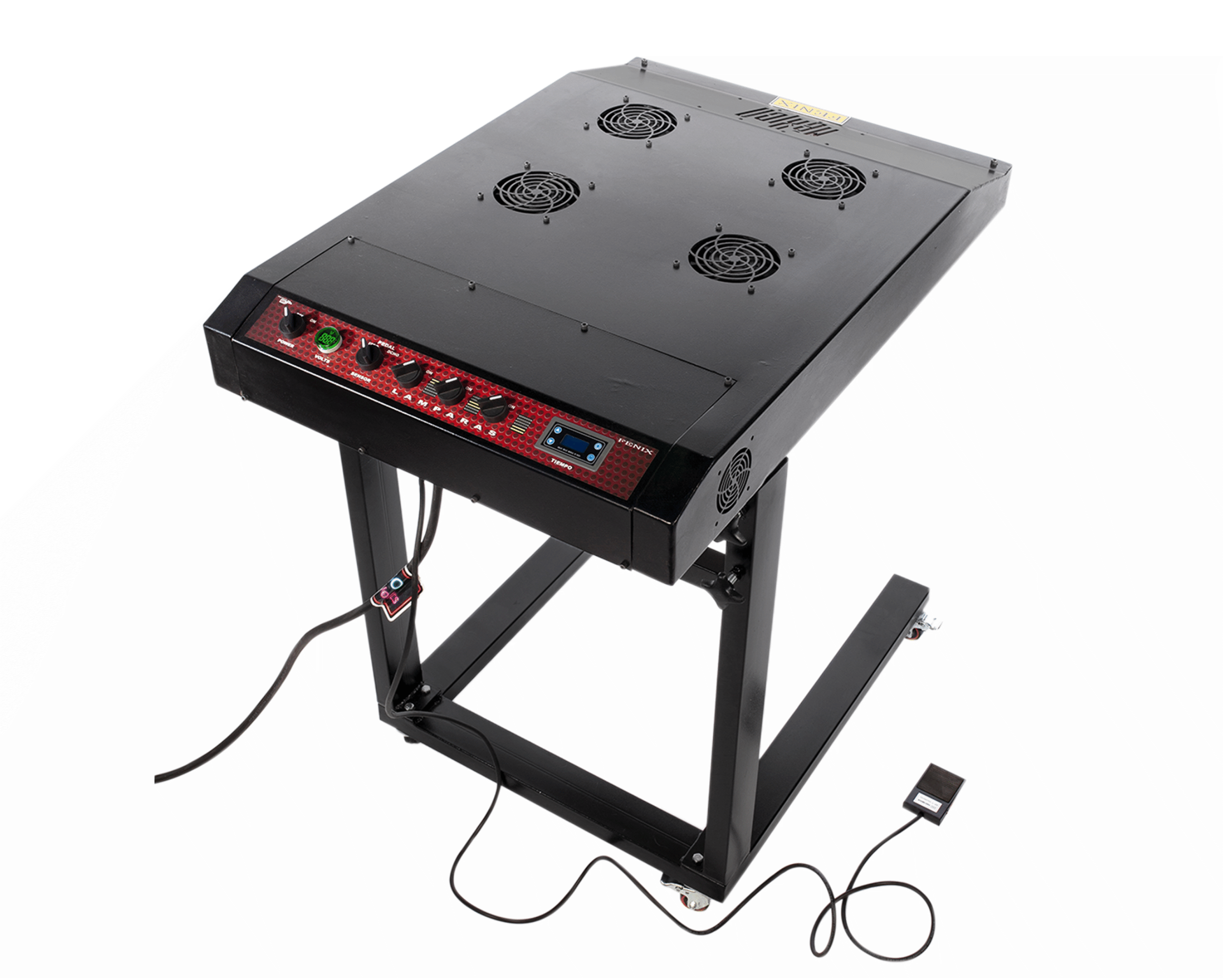 Compatible con los principales sistemas de tinta utilizados en serigrafía —base agua, plastisol, descarga y silicón—, el Flash ofrece un balance preciso entre velocidad, control térmico y eficiencia operativa, integrándose de forma natural en estaciones de impresión manual.